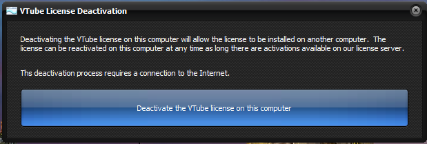 2) Run the VTubeDeactivate.exe and press "Deactivate the VTube license on this computer"