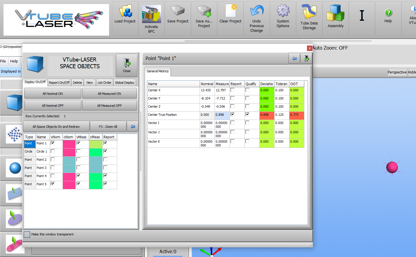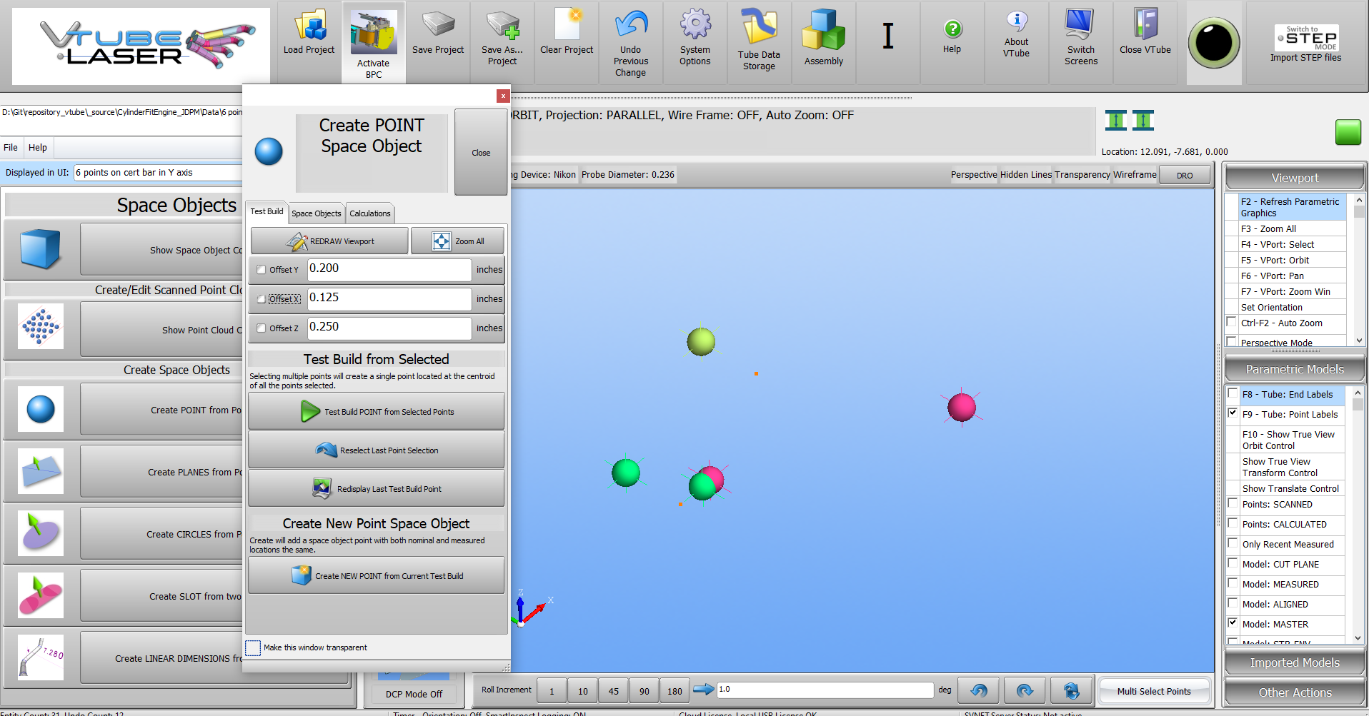 NEW: VTube-LASER can now create and measure POINT Space Objects using a new "Create POINT Space Object" control window.