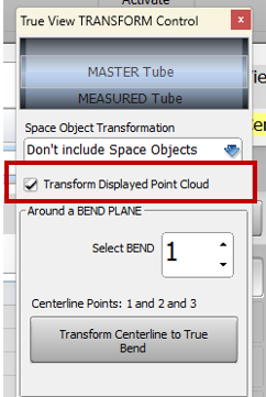 This check box allows users to transform DISPLAYED point cloud buckets when the MASTER, MEASURED, or MEASURED-ALIGNED tubes are transformed. | ![]() |