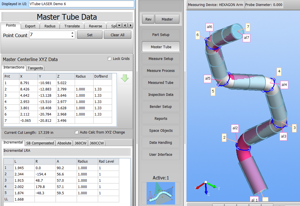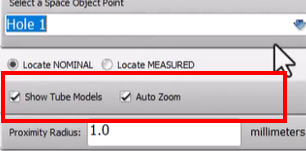 Capability 2: Manually enter nominal point locations in the Space Object control, then locate those points around the measured tube with the probe in the measured-aligned coordinate system.