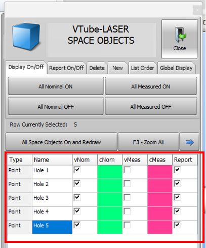 3) Insert a Space Object point into the control for each hole |