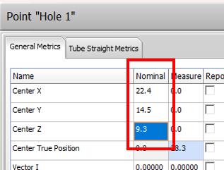 7) Enter the X,Y, and Z values from the print in the nominal cells |
