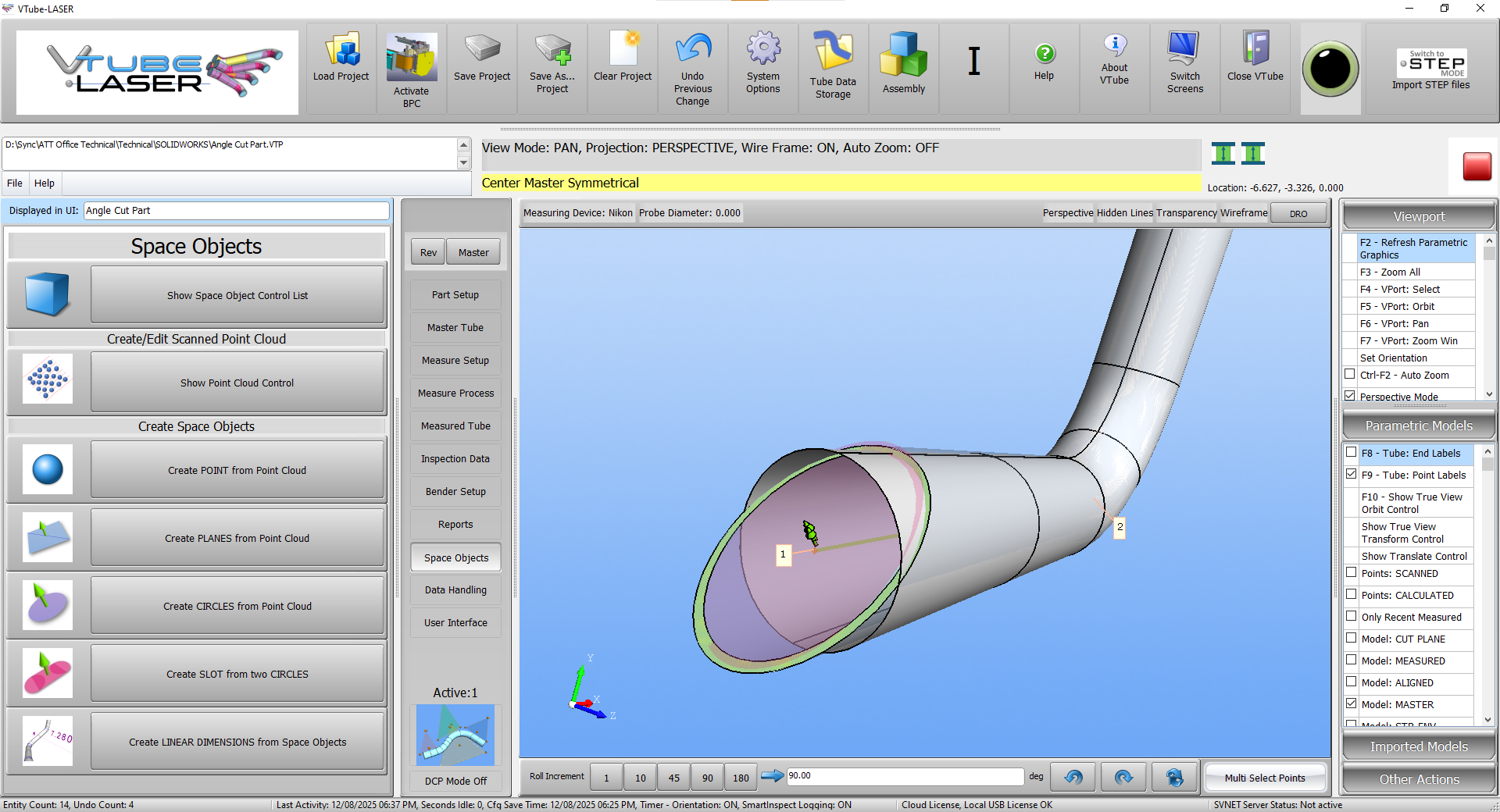 The imported nominal planes can then be compared to measure planes in VTube-LASER. This ability will help with flat miter cuts in tubes.