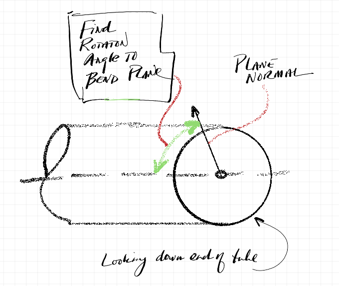 The calculation translates the normal of any plane so that it is attached to the end of the centerline of any bend in a tube model, then returns the rotation angle between that normal and the adjacent bend plane.